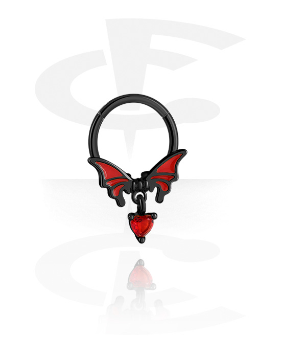 Multi-purpose clicker (surgical steel, black, shiny finish) med bat design och kristallhjärta