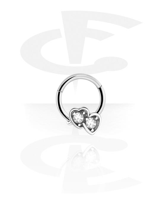 Multi-purpose clicker (surgical steel, silver, shiny finish) med hjärtesmycke och kristallstenar