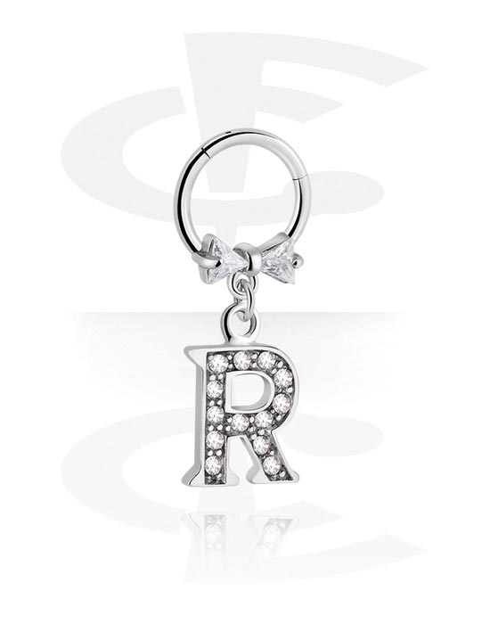 Multi-purpose clicker (surgical steel, silver, shiny finish) med rosett och charm with letter "R"