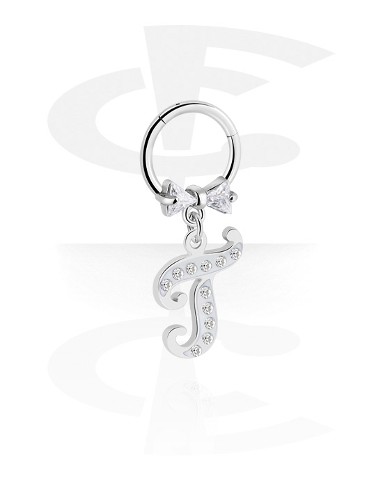 Multi-purpose clicker (surgical steel, silver, shiny finish) med charm with letter "T" och kristallstenar